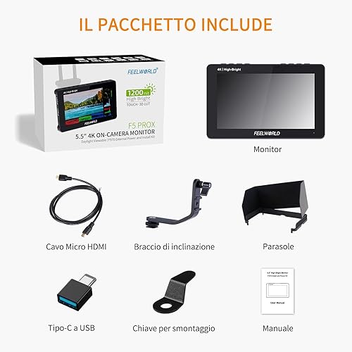 F5PROX Monitor Da Campo 5.5 pollici 1600Nit Camera Field Monitor 4K HDMI HD 1920x1080 IPS, 3D LUT Waveform Vector Scope Monitor Esterno Fotocamera Video Camera con Touchscreen