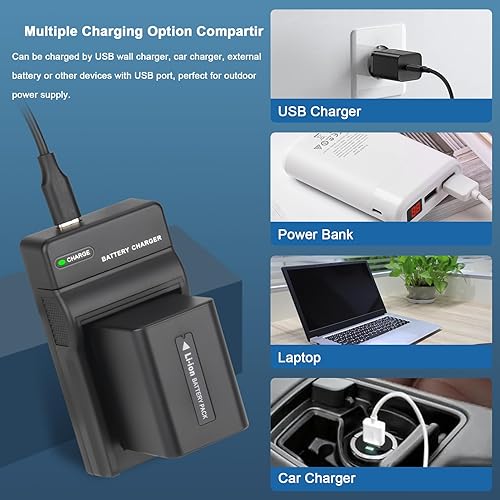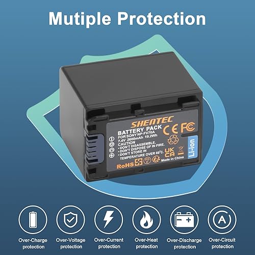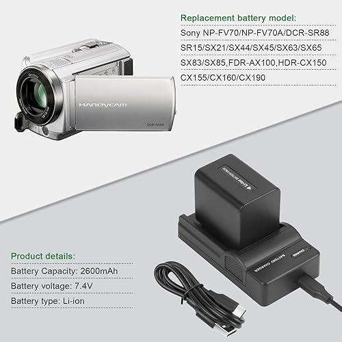2Pz Shentec 7.4V 2600mAh Li-ion NP-FV50 NP-FV50 batteria + caricatore per Sony NP-FV30 NP-FV40 FV70 FV100 batterie; HDR-CX150E HDR-CX170 HDR-SR68 DCR-SR20E HDR-CX190 HDR-CX130