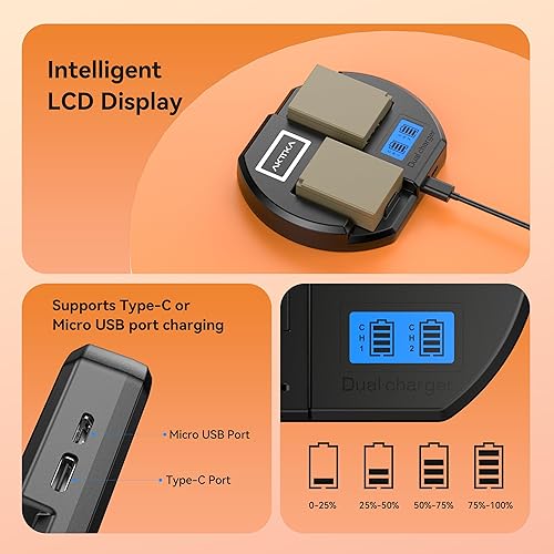 AKTTKA Batteria NP-W126S/W126 1680mAh 2-Pack e caricatore PD10W per Fujifilm X100F, X-A1, X-E2, X-E2S, X-Pro1, X-Pro2, X-T1, X-T2, X-T3, X-T10, X-T20, X-T100, Display LCD