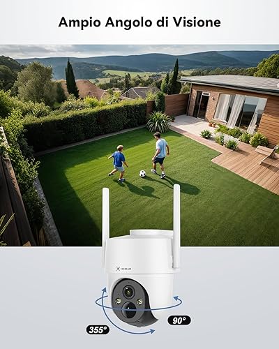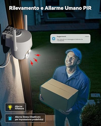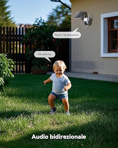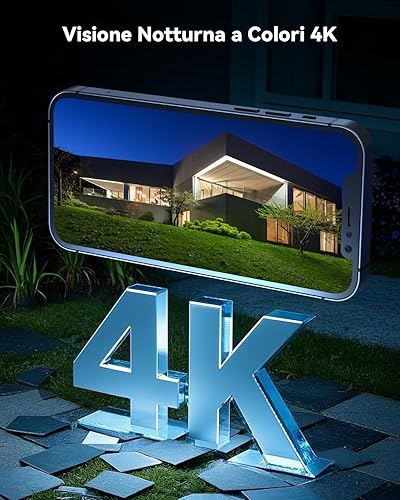 COCOCAM 4K 8MP Telecamera Wi-Fi Esterno Solare Senza Fili, con Pannello Solare da 6W, Visione Notturna a Colori 4K, Riconoscimento AI, Rilevamento Umano PIR, 355° P 90°T, 2.4GHz