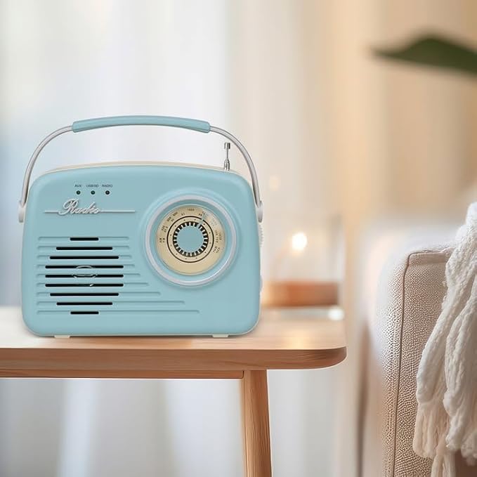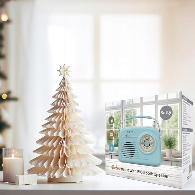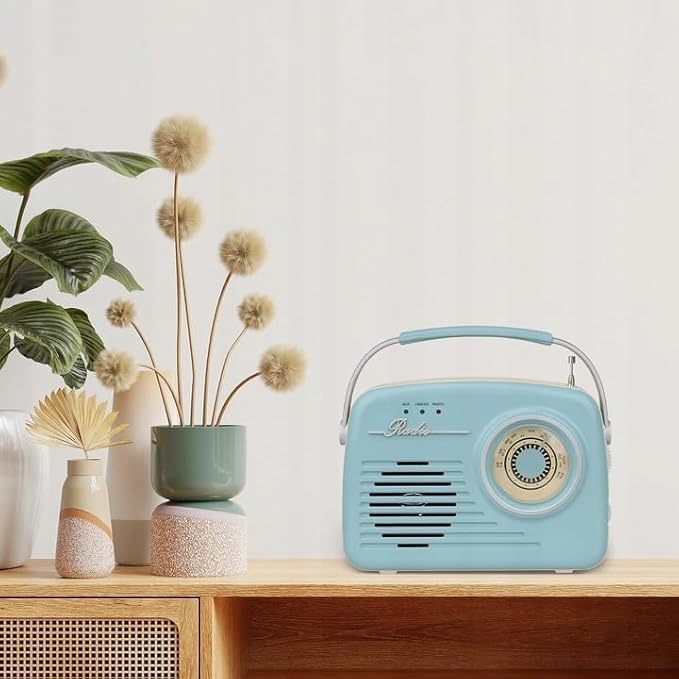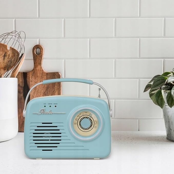 Setty Radio Retro anni '50's altoparlante Bluetooth portatile senza fili retrò vintage radio come decorazione cucina con funzione USB SD Aux, blu