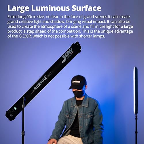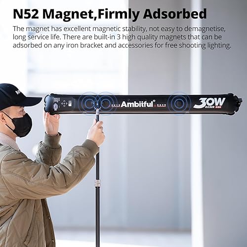 AMBITFUL GC30R 30W RGB Full-Color Tubo Gonfiabile Luce 2500K-10000K Palmare LED, CRI 95+, TLCI 96+ per Supporto Aspirazione Magnetica, Impermeabile Barra Luce LED Illuminazione Bastone Bacchetta