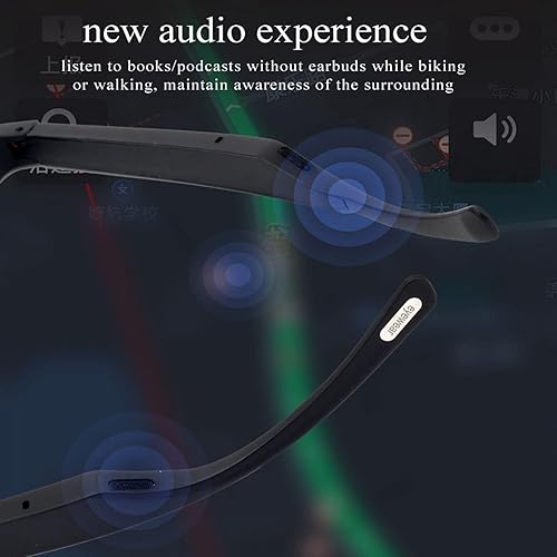Occhiali Bluetooth Audio Smart con Lente Anti Luce Blu Cuffie Auricolari Aperte Ascolta Musica Chiamate in Vivavoce, Occhiali Bluetooth 5.0 Smart, Occhiali Wireless per Sport All'aria Aperta Ciclismo