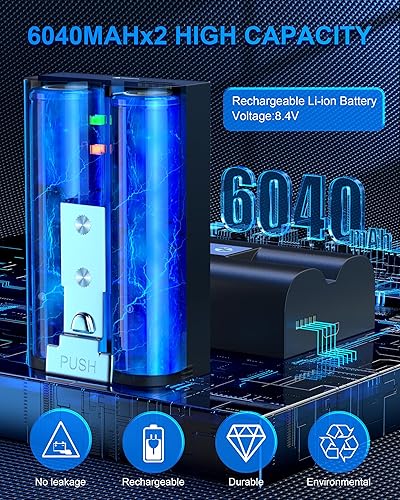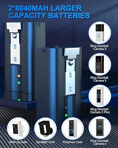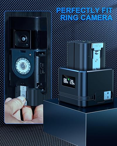 2 batterie e stazione di ricarica digitale per Ring, batteria da 3,65 V 6040 mAh compatibile con videocitofono 2/3/3+/4, Stick Up Cam (2/3Gen), batteria Spotlight Cam, batteria Spotlight Plus/Pro Cam