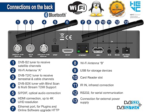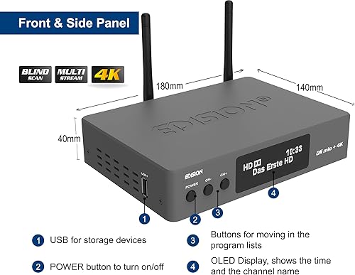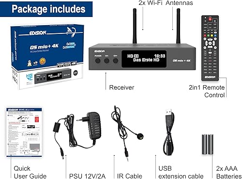 Edision OS Mio+ 4K Triple DVB-S2X+DVB-S2/T2/C H265 HEVC Main 10, E2 Linux, 4K Ricevitore Combo, Multi Stream, Blind Scan, Wifi On Board, Grigio
