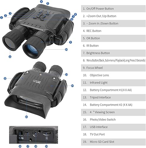 Bestguarder Binocolo per visione notturna Binoculare da caccia digitale ad infrarossi HD 4,5-22,5 x 40 mm con scheda di memoria 32G, immagine 2592 x 1944 e video 1280 x 720 e schermo LCD da 4 pollici