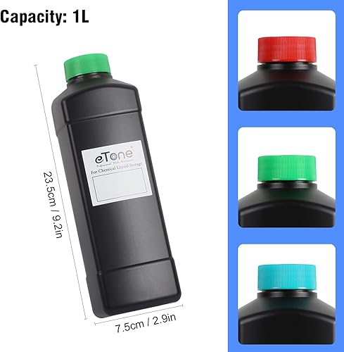 eTone Darkroom - 3 flaconi da 1000 ml per conservazione di sostanze chimiche, 1 l