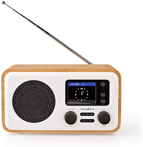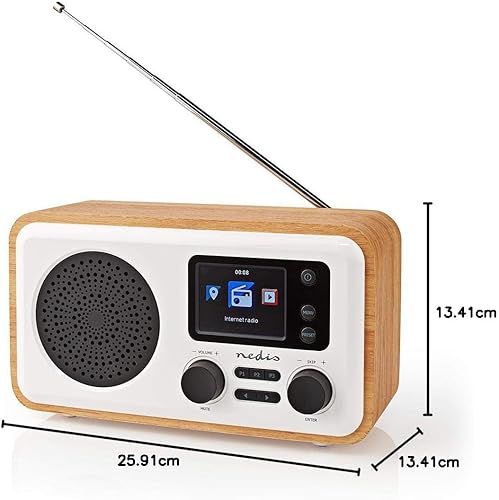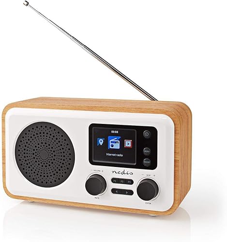 Nedis Radio Internet | Design da tavolo | Bluetooth® / Wi-FI | Dab+ / FM/Internet | 2,4' | Schermo a colori | 7 W | Telecomandato | App controllata | Sveglia | Bianco/Legno