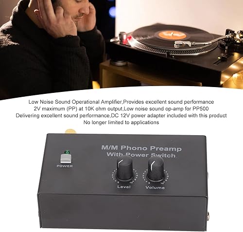 Zunate Preamplificatore Fono PP500, Preamplificatore Giradischi in Vinile Professionale Mini Preamplificatore Stereo a Basso Rumore, Ingresso in Uscita, Controllo Manopola