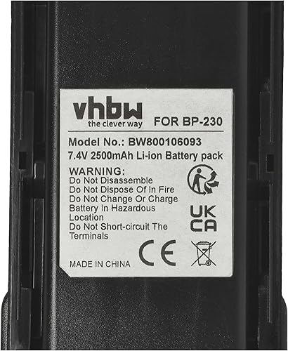 1x batteria compatibile con Icom IC-F15S, IC-F14S, IC-A14S, IC-F15, IC-F14, IC-A14, IC-4011 radio (2500mAh, 7,4V, Li-Ion)