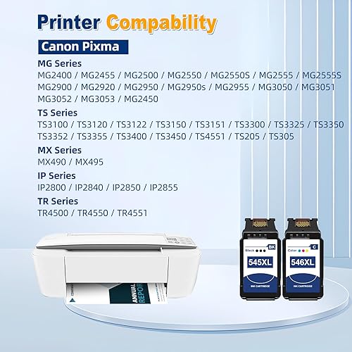 545XL 546XL/ Compatibile per Cartucce Canon 545 546 XL/per TS3100,TS3150,TS3300,TS3350,TS3400,TS3450,MG2500,MG2550,MG2555S,MG2950,MG3050,MG2450,MX490,MX495,TR4500,TR4550/ Nero PG545 e Colore CL546