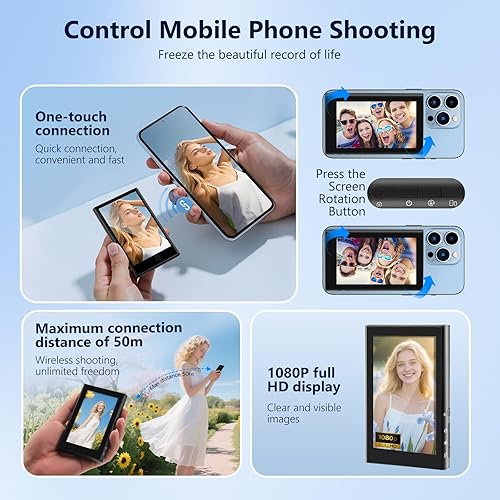 Vehoukli Monitor Esterno su Cellulare Android, Interruttore Magnetico su Selfie Vlog con Telecomando Bluetooth e Rotazione di 180°, per registrare Il Video in Streaming Live