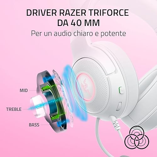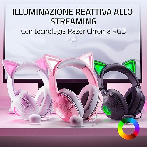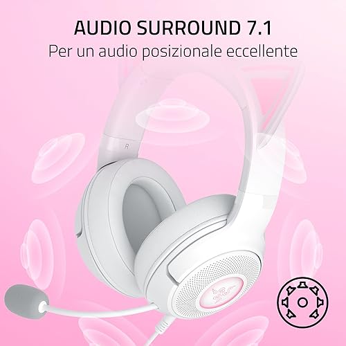 Razer Kraken Kitty V2 BT - Auricolare RGB Bluetooth senza fili con orecchie da gattino per giochi e streaming (325g, driver TriForce da 40mm, Bluetooth 5.2, microfono a cancellazione di rumore) Bianco