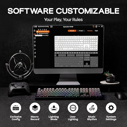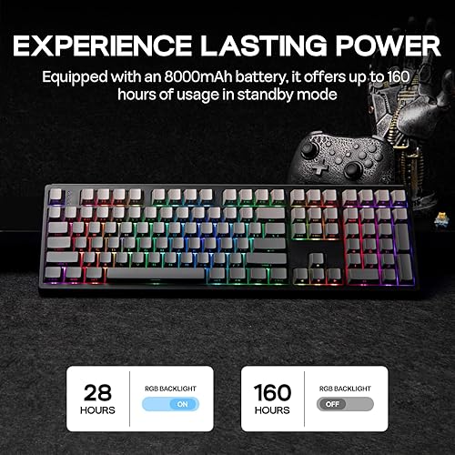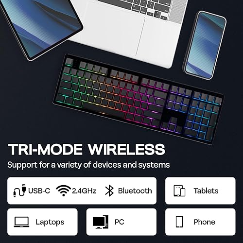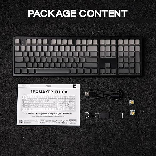 EPOMAKER TH108 Tastiera Meccanica Full Size, Tastiera da Gioco Wireless con Batteria da 8000mAh, Creamy Gasket, 108 Keys, Hot Swap, Custom Driver, RGB Backlight (Nero, Sea Salt Silent)