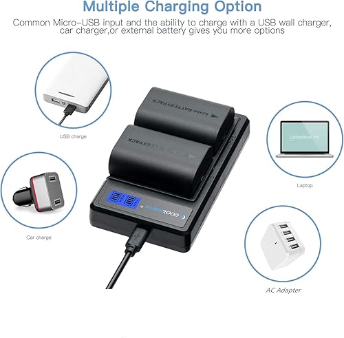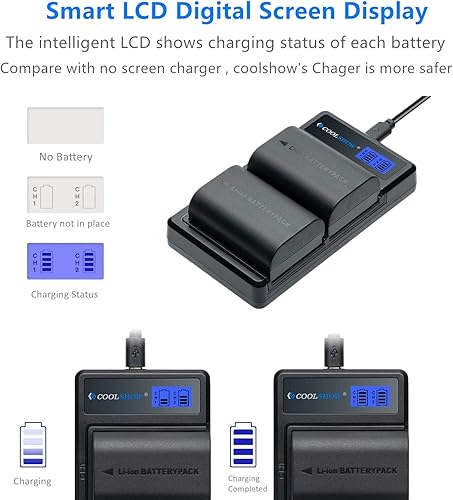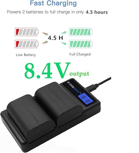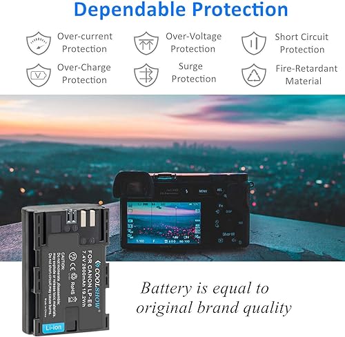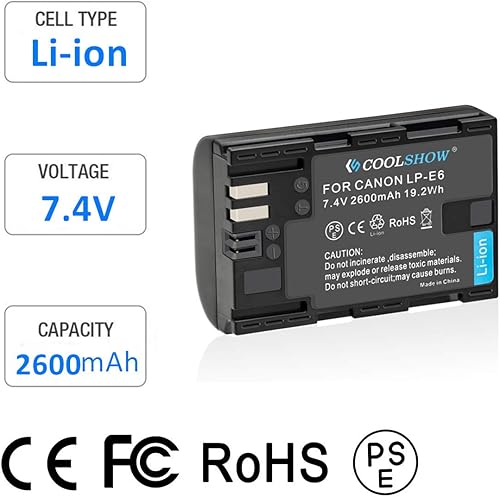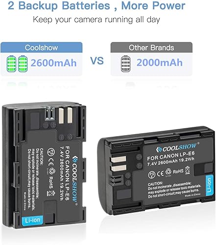 COOLSHOW LP-E6 Batteria di ricambio 2pezzi(2600mAh)con Caricabatterie Doppio LED per Canon EOS 5D Mark II/III/IV,EOS 5DS,EOS 6D,6D Mark II, EOS 7D,EOS 7D MarkII,EOS60D,60Da,EOS70D,80D,EOS R,XC10,XC15