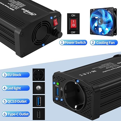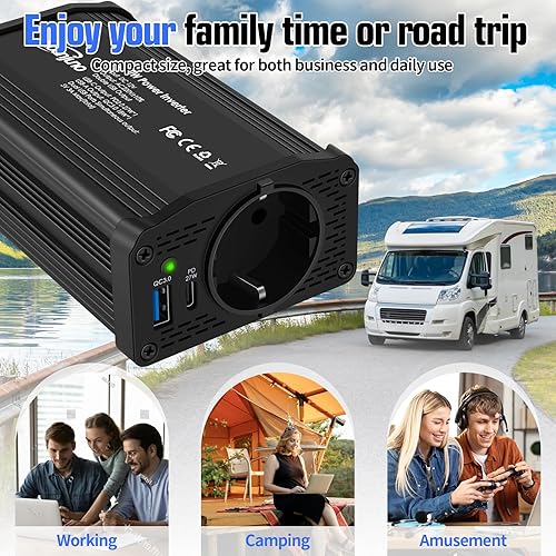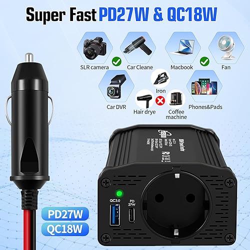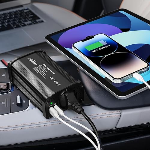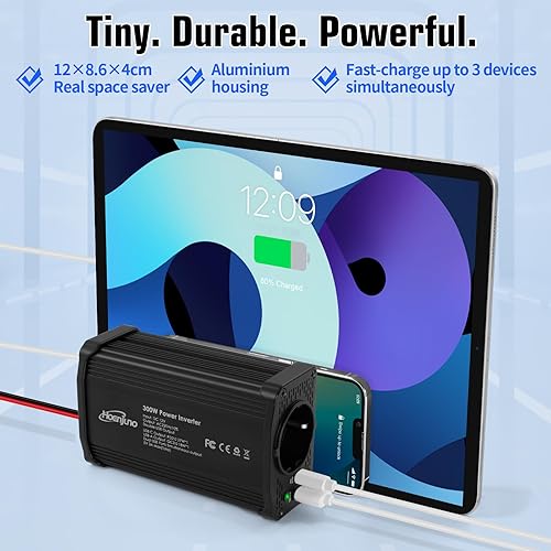 Hoenjuno Inverter di Potenza, Invertitore 300W per Auto, Convertitore da 12V a 220-240V con Doppia Porta di Carica USB da 4.8A ~ Carica Laptop, iPad, iPhone, Tablet, Console e Molto Altro