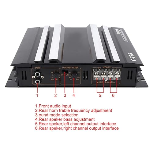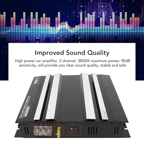 Amplificatore Audio Auto, Amplificatore per Auto Amplificatore di Potenza 3800W Qualità del Suono Chiara Sensibilità 90dB 2 Canali Dissipazione Rapida del Calore per Stereo