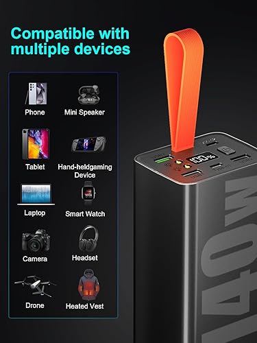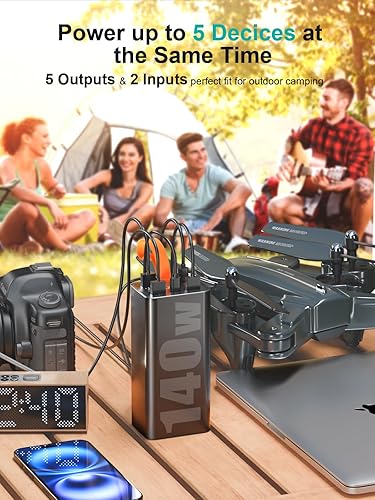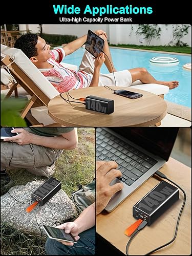 140W Power Bank 70000mAh:grande Batteria Esterna Portatile con Ricarica Rapida Powerbank PD3.1 QC4.0, 5 Uscite USB-C, Display LED e Torcia – Ideale per Laptop Smartphone Tablet Viaggi e Outdoor