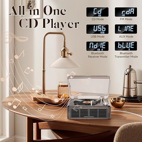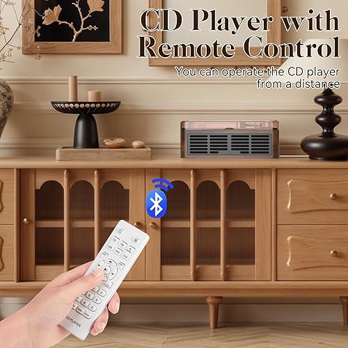 Gueray Lettore CD Vintage Bluetooth per Casa, Lettore CD Retro con Altoparlanti Stereo HiFi, Supporta Riproduzione USB/AUX/Type-C, Radio FM e Telecomando