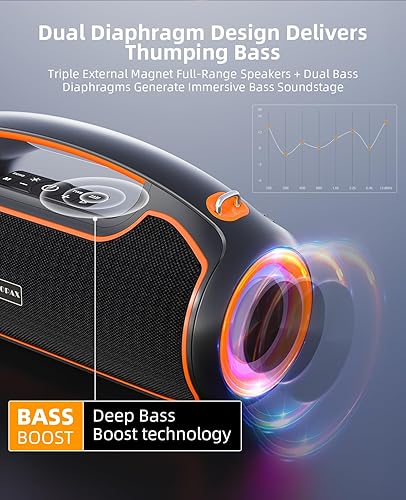 VUOPAX Cassa Bluetooth Potente Altoparlante Portatile Speaker Bluetooth da esterno IP65 impermeabile Con Rinforzo dei Bassi / 200W Picco di Potenza/DSP/Bluetooth 5.3 / TF/USB/AUX/Cintura a spalla