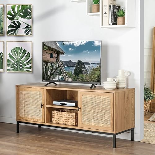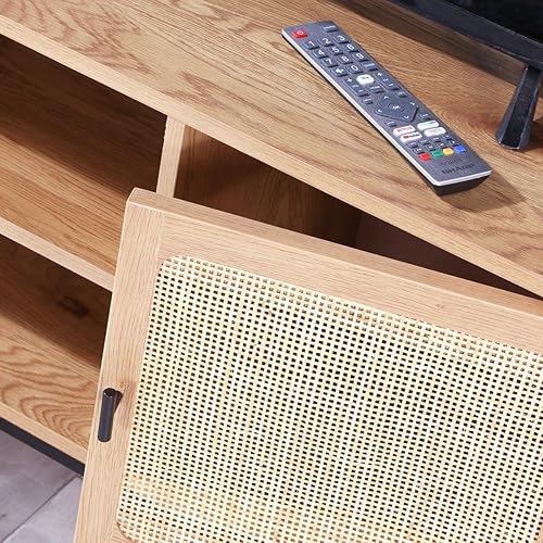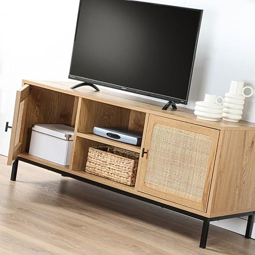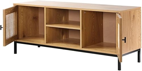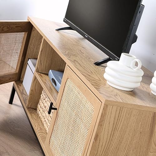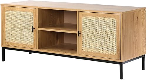 Meuble TV 2 Portes avec Cannage Rotin et 2 Niches - L120cm