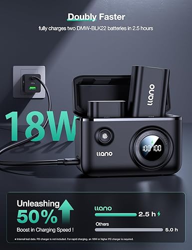 DMW-BLK22 Carica batteria rapido da 18 W con 2 USB-C per Panasonic Lumix S5 II S9 GH6 S5IIX GH5 II S5M2 S5M2X GH5M2 DC-S9 DC-G9 IIDC-S5 DC-S5 II batteria con Smart Display Caricabatterie