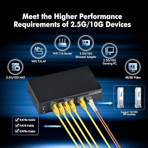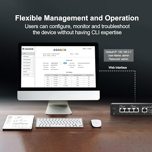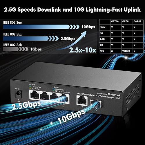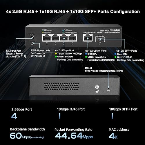 MokerLink 10G Easy Web Managed Switch, 4x2.5G, 1x10G RJ-45 Base-T, 1x10G SFP, Supporto LACP/VLAN/QOS/IGMP, Metal Web Managed Fanless Network Switch