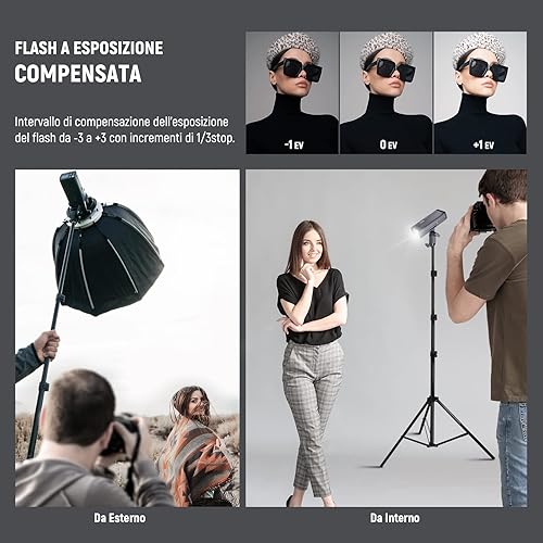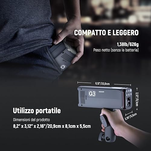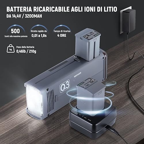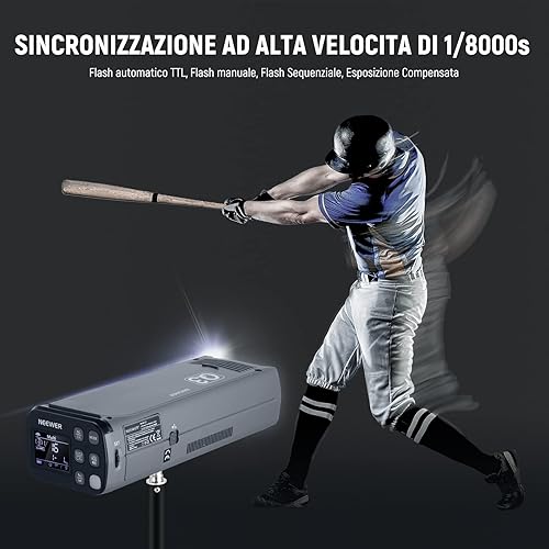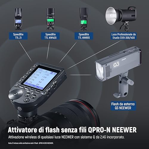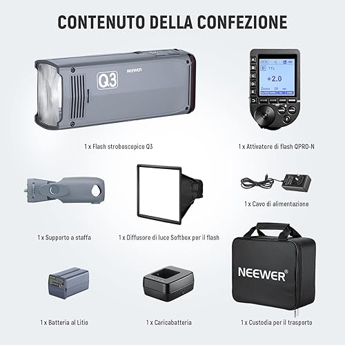 NEEWER Flash TTL Q3 200Ws 2,4G (2a Versione), Luce 1/8000 HSS, Monoluce Fotografica/Attivatore QPRO-N Compatibile con Nikon, Diffusore/Batteria 3200mAh, 500 Scatti a Piena Potenza, Riciclo 0,01-1,8s