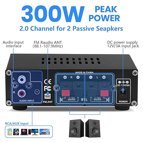 Amplificatore HiFi Bluetooth AS-22 Mini Amplificatore Audio Stereo 2.0 Canali 40W x 2 Classe D Ricevitore Amplificatore di Potenza Digitale con Ingresso BT AUX USB, DC 12V/5A