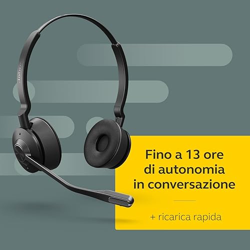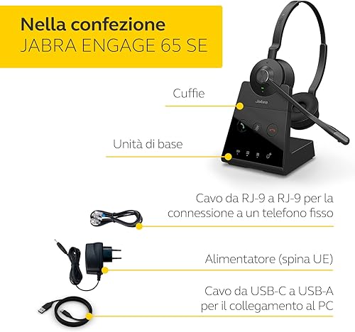 Jabra Engage 65 SE Stereo Wireless Headset Chiamate professionali, DECT Security, batteria da 13 ore, comfort per tutto il giorno con base, alimentatore, cavo USB-C, certificato Microsoft