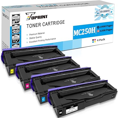 4 Colori Cartucce Toner Compatibili Cartucce di Stampa M C250 P C300 C301 C250H C300W Alta Capacità 6900 Pagine per Nero 6300 Pagine CMY per Ricoh M C250FW M C250FWB M C251FW P C300W P C301W P C311W