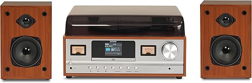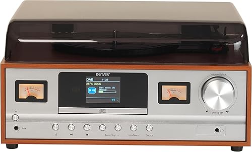 Sistema Giradischi Stereo DENVER MRD-52DARKWOOD. Ricevitore Radio Digitale DAB+/ FM, Lettore CD, Aux-In. Volume 2x5W.