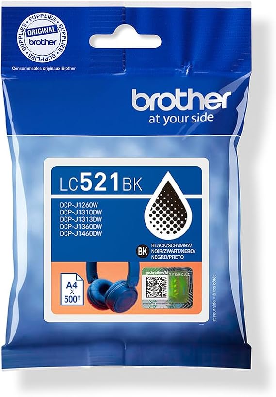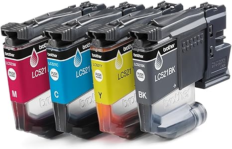 Brother LC521VAL | Kit da 4 Cartucce ink | Include colori Nero, Ciano, Magenta e Giallo | da 500 pagine | per stampanti DCPJ1260W / DCPJ1310DW / DCPJ1313DW / DCPJ1360DW / DCPJ1460DW