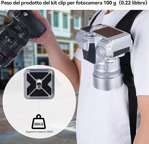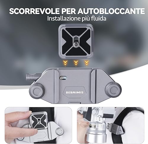 Bebaimis Clip per fotocamera per zaino,kit di clip per Fotocamera B1 a sgancio rapido,kit di clip per fotocamera con piastra a sgancio rapido,Clip a sgancio rapido per zaino fotografico,Argento