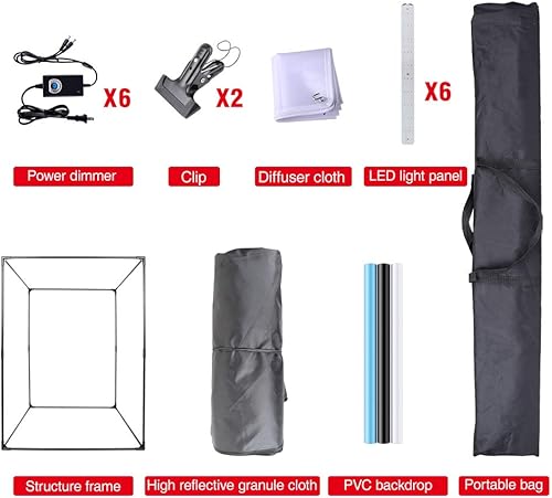 Scatola luminosa professionale per studio fotografico, 140 cm, kit tenda pieghevole con luci LED dimmerabili a 576 luminosità e 3 sfondi per ritratti, mobili, abbigliamento e fotografia
