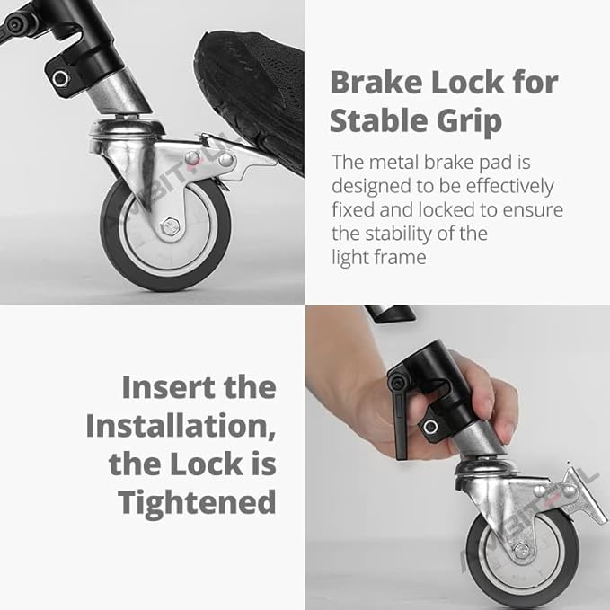 Ruote Professionali per Supporto C - Diametro 25 mm, 75 mm, 360° Regolabili Con Funzione di Bloccaggio - Per Studio Fotografico e Video