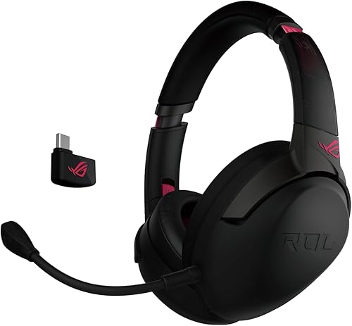 ASUS ROG Strix Go Cuffia Gaming Wireless, 2.4 GHz, Audio Alta Risoluzione, Microfono Cancellazione Rumore, Design Leggero, USB-C, 3.5mm, PC, Mac, Switch, Xbox One, PS4/PS5, Dispositivi Mobile, Nero