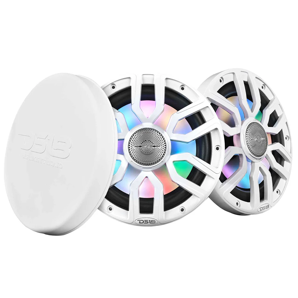 DS18 8" 2-Way Coaxial Marine Speakers w/Digital LED Lights Bullet Tweeter - White - 175W, 4-Ohm [NXL-IQ8/WH]