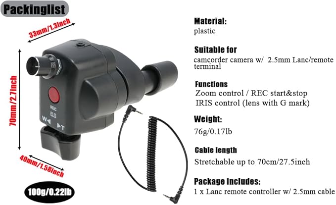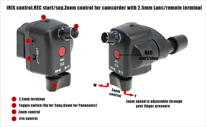 Wired Camcorder Lanc Telecomando IRIS/Zoom/Video Rec Start/Stop per Sony PXW-Z200 PXW-Z90 Z190 Z5C Z7C FS5 FS7M2 FS7H FS700 FX9 A1C per Panasonic CX200m HC-X1500gk