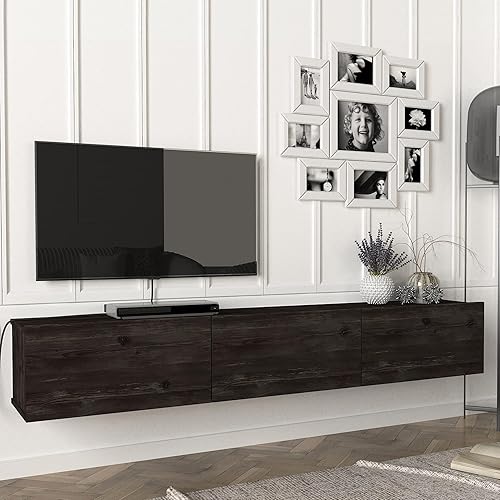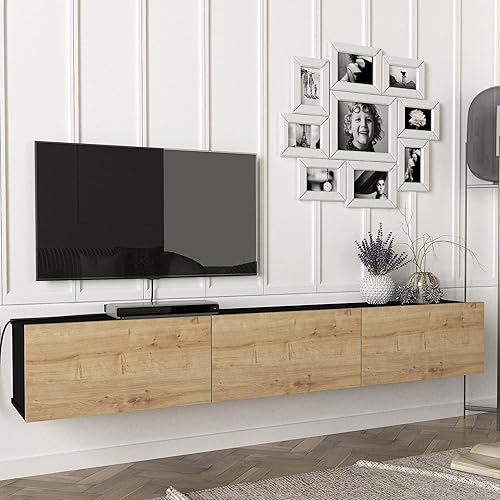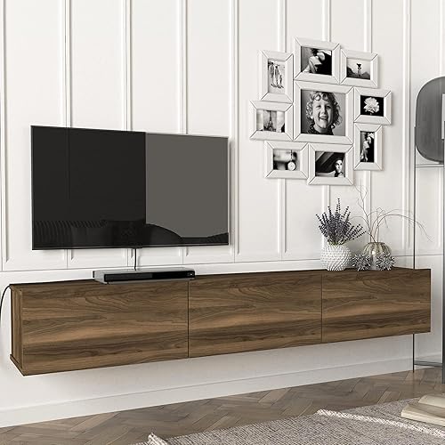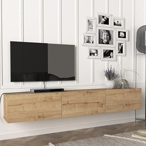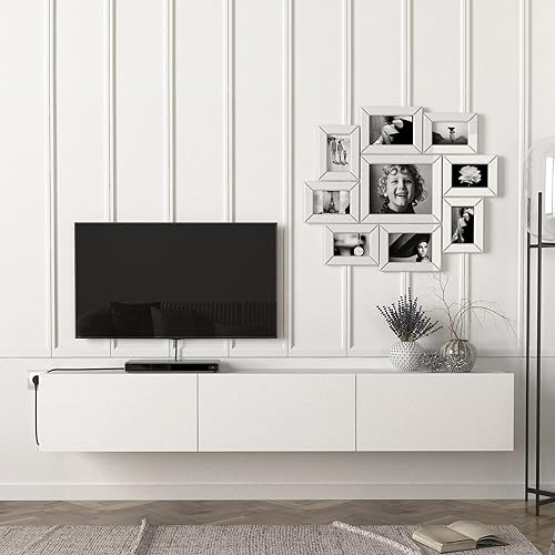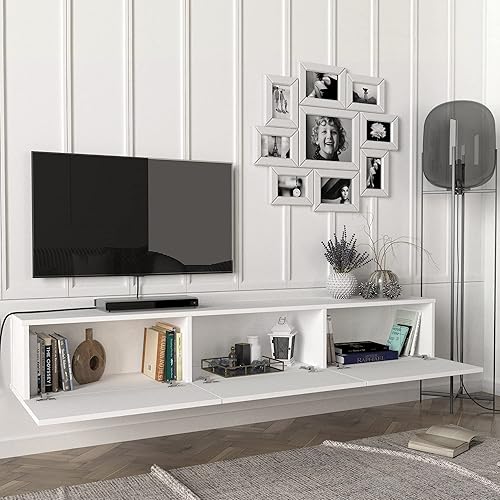 Mobile TV da Parete con 3 Ante a Ribalta Mensola Porta TV 180 x 31 x 29,5 cm Armadietto Pensile - Bianco