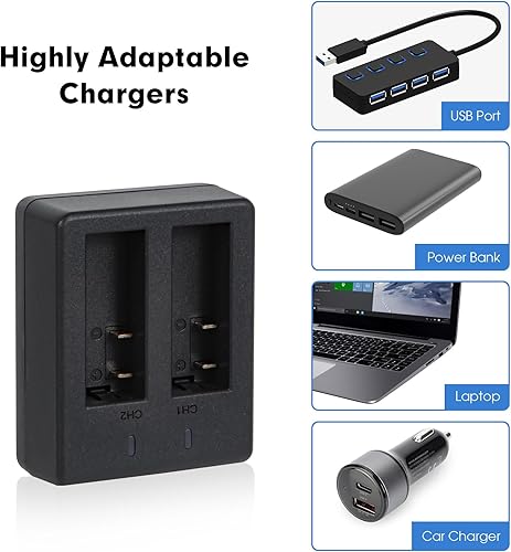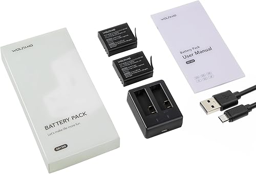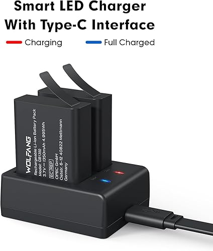 WOLFANG Action Camera GB1350 Batteria 1350mAh Batteria ricaricabile (2 pezzi) con caricatore USB Cargador GA100/GA120/GA200/GA300