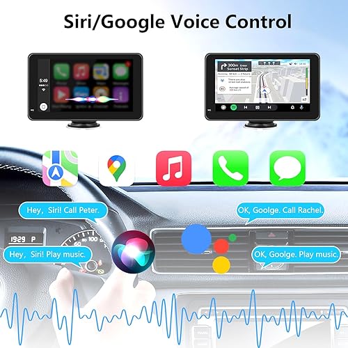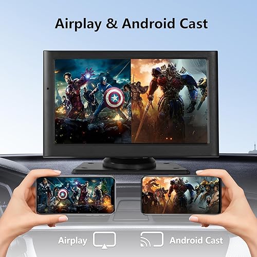 CarPlay e Android Auto Senza Fili, Display CarPlay Portatile da 7 Pollici con Telecamera Posteriore da 720P, Supporta Bluetooth, Airplay/Mirror Link, Siri/Google Voice Control, GPS, FM, AUX