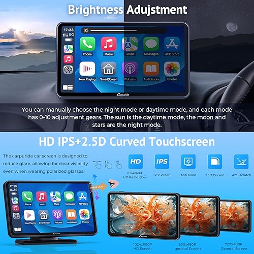 CARPURIDE Senza Fili Autoradio, Portatile Lettore Video per Auto con Cruscotto Wireless Carplay & Android [7 pollici] con FM/GPS Navigazione/Vivavoce Bluetooth 5.0/ Mirrorlink/Siri, con Fotocamera