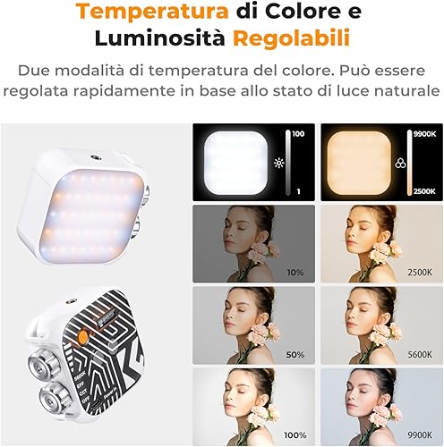 K&F Concept Luce Video LED Bicolore, Luce di Riempimento Fotografica Portatile da 2000 mAh, 15 Effetti di Luce, 2500K-9900K, CRI 96+, per Vlogging, Selfie, Fotografia di Oggetti, Nero