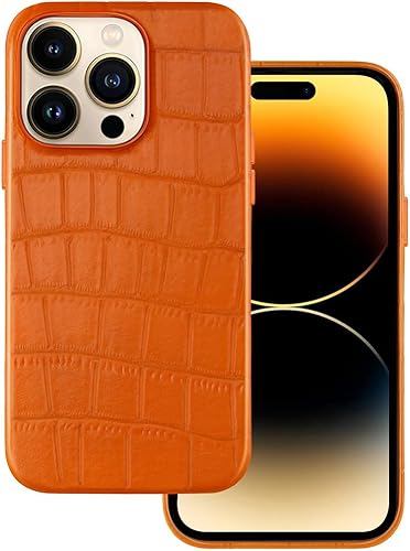 Progettata per iPhone 14 Pro Custodia in pelle,custodia in vera pelle,magneti integrati compatibile con MagSafe-Marrone