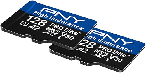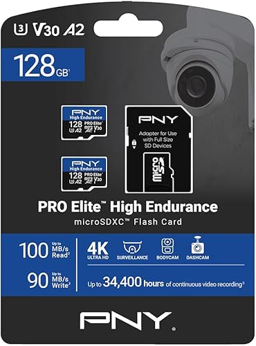 PNY 2x128GB Scheda microSDXC PRO Elite™ High Endurance C10 U3 V30 A2 – Velocità di lettura/scrittura fino a 100/90MB/s, 4K UHD, Full HD, UHS-I, sorveglianza, sicurezza, dash cam