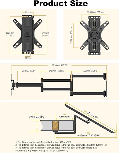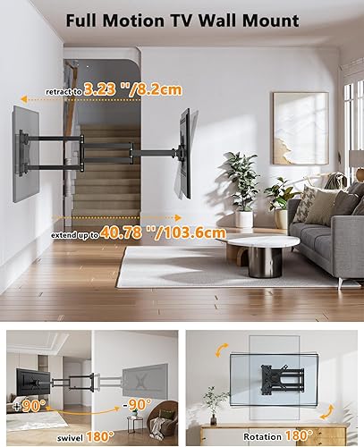 Supporto TV Parete Braccio Extra Lungo 1036mm, 180° Rotazione Supporto TV Monitor per LCD/LED da 13 a 43 Pollici, Braccio TVs Girevole Inclinazione Estensibile Fino a 25kg, VESA 200x200mm