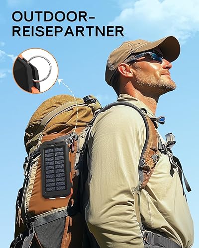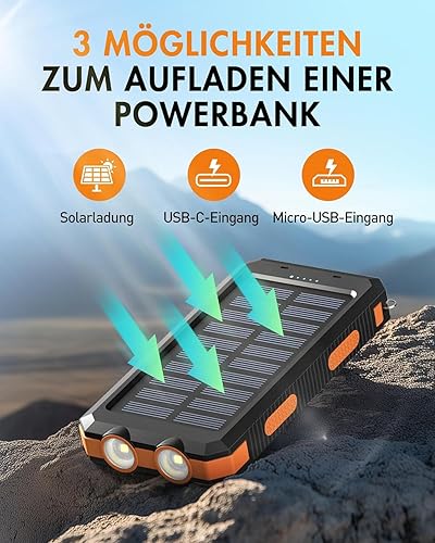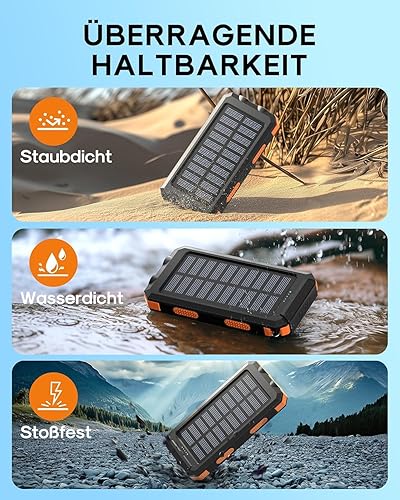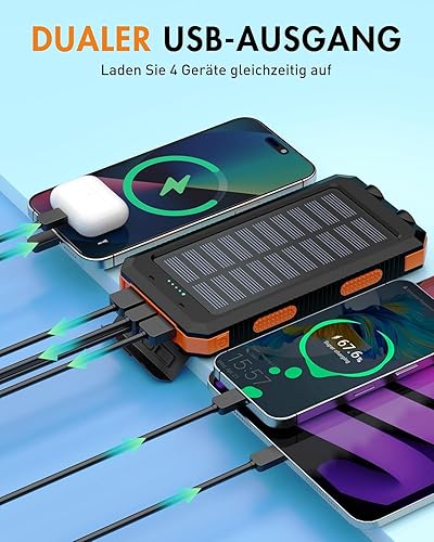 Vikeri Powerbank Solare da 26800 mAh, Power Bank Solare Impermeabile, Porta USB-C per Ricarica Rapida, con 4 uscite, per Smartphone, Tablet, ecc.(Arancione)