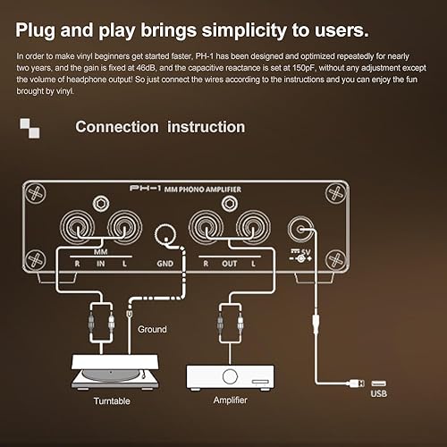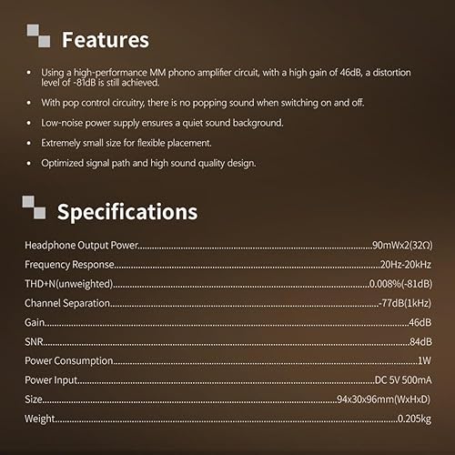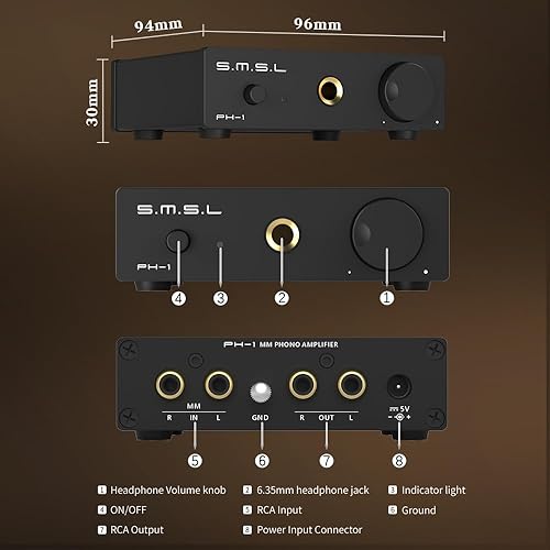 SMSL PH-1 High fidelity MM-Phono amplificatore amplificatore oro 46dB SNR 84dB THD+N 0,008% 6,35 mm jack per cuffie Hi-Res Amp RCA-ingresso/uscita grande volume del palmo singolo amplificatore MM