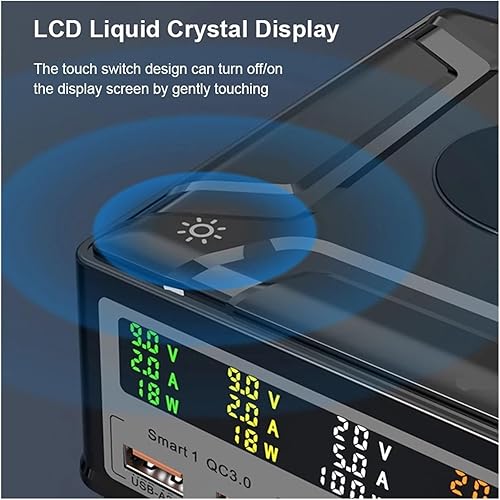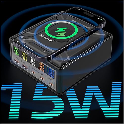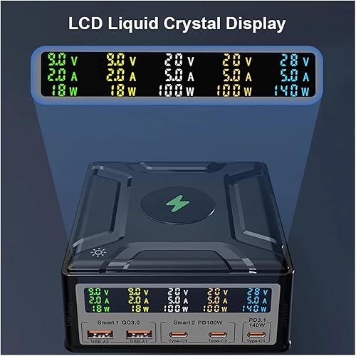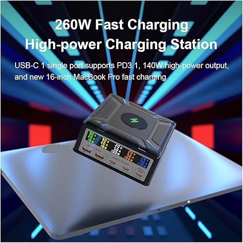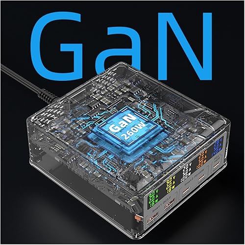 TIEOAXFT Stazione di Ricarica USB C da 260 W, Caricabatterie rapido 6 in 1 con PD3.1 USB-C 140 W PPS 100 W 45 W, Porta QC3.0 e Pad di Ricarica Wireless(E-U-Plug)